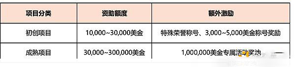 据官方公告,不论是具备金点子的初创团队,还是已经深耕的成熟项目,通过终选的项目将获得价值10,000~300,000美金不等的资助额度,此外,Bitlayer将为获得特殊荣誉称号的团队提供价值3,000~5,000美金奖励、以及价值高达1,000,000美金的专属活动奖池等额外激励,所有激励将在Bitlayer TGE后兑换为相应的BTR代币。