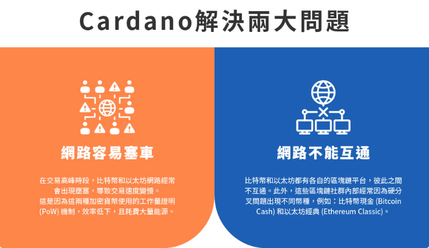 Cardano 的创立主要是为了解决比特币(BTC) 和以太坊(ETH) ,