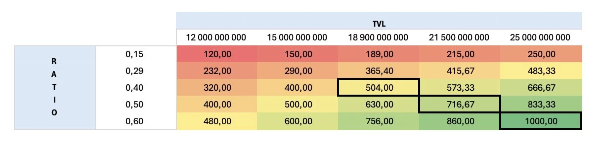 评估资产是否被高估或低估的最佳方法是使用市值/TVL 倍数等关键指标将其与其他资产进行比较。我们几周前进行了这项分析,结果显示 AAVE 目前被明显低估了。