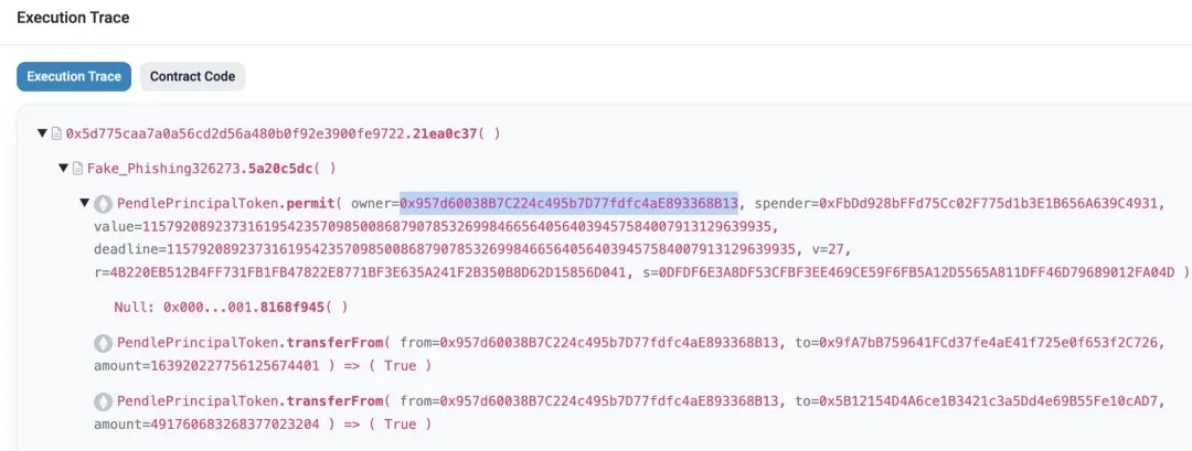 某用户在质押期间在钓鱼网站进行了Permit签名,用户第一时间去检查了也没发现异常授权。钓鱼却在之后上链这笔 permit 离线授权签名,给目标地址的目标资产开了个授权风险敞口,但目标用户并没法知晓,直到目标用户提出相关再质押的 ETH 资产,钓鱼立即转走,因此该用户丢失了 212 万美金。