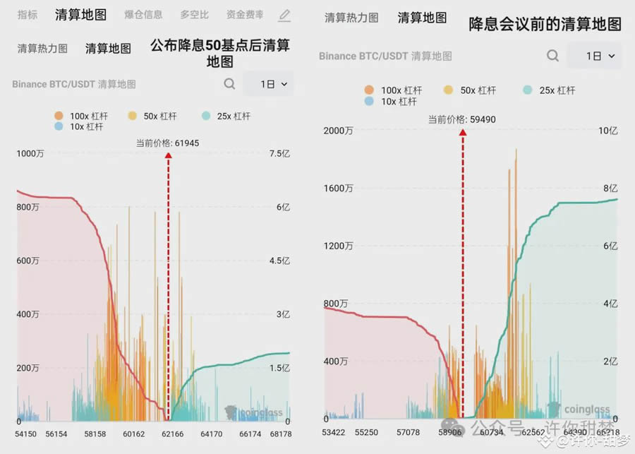 对比一下降息前后的清算地图,现如今山寨季开启条件又达成一条,我们应该选择有炒作预期的山寨币,并关注板块热点,跟随资金流动,可以说,苦日子熬到头了。