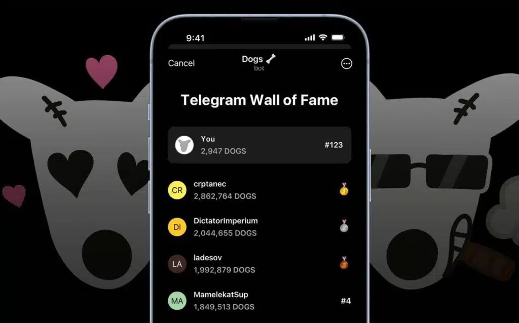 $DOGS 被宣传为「最具Telegram 本土特色的迷因币」,它利用社交网络应用程式的广泛流行来吸引广泛的受众。目前,它的用户群不断增长,已超过5000 万,使其成为继Hamster Kombat和Tapswap 之后最具病毒性的Telegram 迷你应用程式之一。