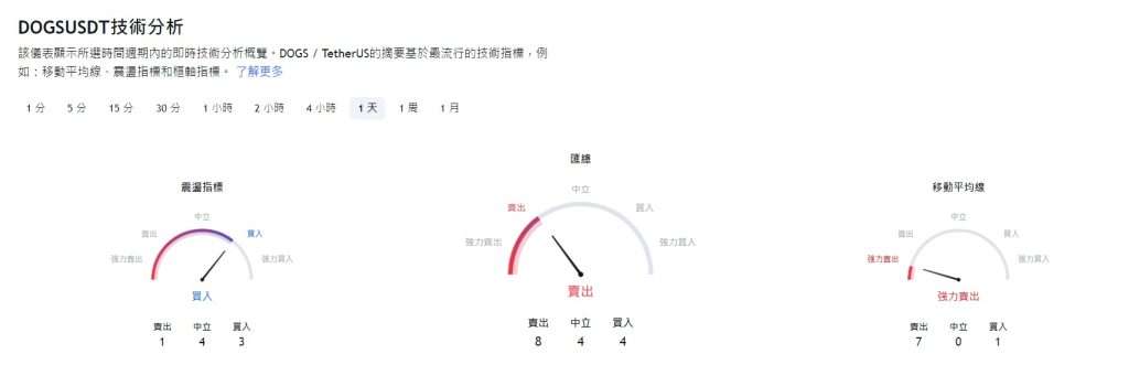 TradingView 数据显示,截止2024 年9 月25 日,DOGS 24 小时技术分析如下: