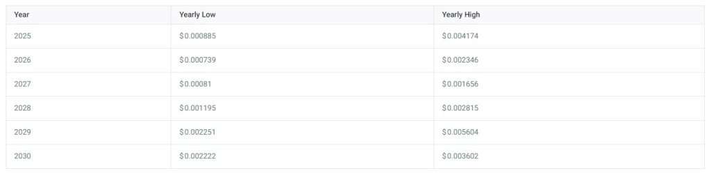 所有这些都表明$DOGS 的价格走势积极,即使该代币可能遵循的轨迹存在不确定性。我们对2030年$DOGS 的价格预测表明,到本十年末,该代币的平均价格为0.00162549美元。