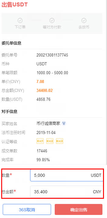 输入要卖出的USDT个数,系统自动按当前汇率 算出能卖多少人民币。