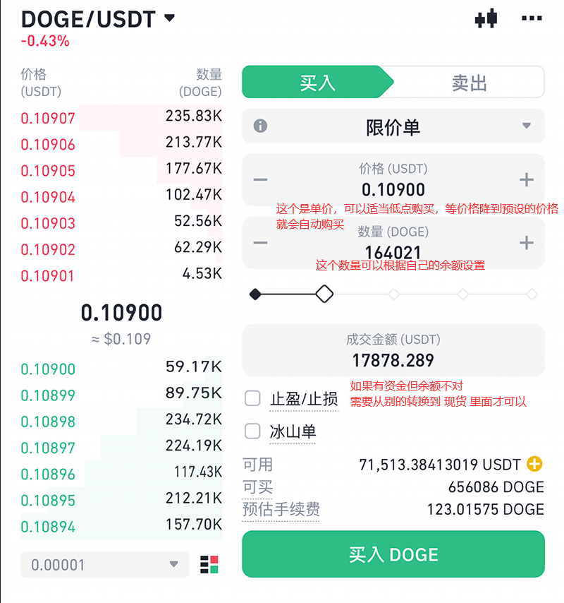 2.下单购买:登录交易平台,进入狗狗币交易页面,根据市场行情和个人判断,选择合适的买入价格和数量,提交订单。