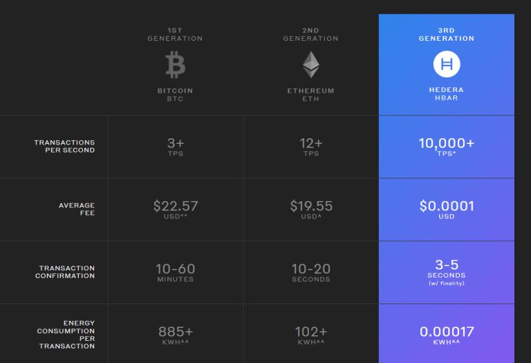 总的来说,Hedera 的独特之处在于它非常快、节能(负碳)和安全,这些优势主要归因于其潜在的哈希图共识演算法(将于2022年开源)。