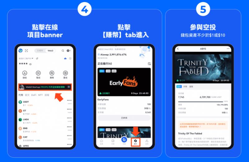 APP端通过项目banner或功能区进入“Startup空投”参与