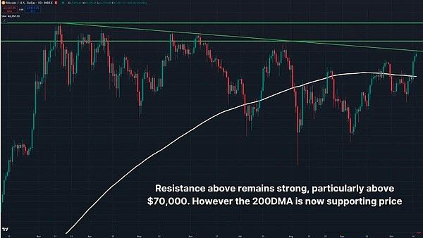 当前,比特币自突破 60,000 美元大关后稳步攀升至接近 70,000 美元水平,引发了投资者对其能否达到新历史高点以及能否突破关键阻力位的关注。