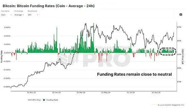 在中性区域,清算级联的风险较小,这是过度杠杆头寸被消灭时的常见现象,导致市场急剧下跌。只要融资利率保持稳定,比特币就可以有继续上涨所需的喘息空间,而不会出现大幅波动。