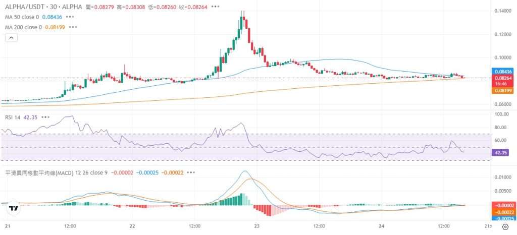 根据BTCC 数据,截止10 月24 日,ALPHA 价格为0.08225 美元,在过去24 小时的价格变化为-4.81%。