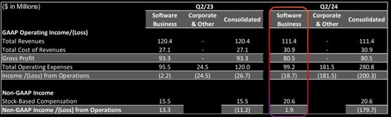 微策略软件业务仍呈现亏损状况,其营收年减7.5%,为1.111亿美元。营业亏损(lossfromoperations)达1,870万美元。