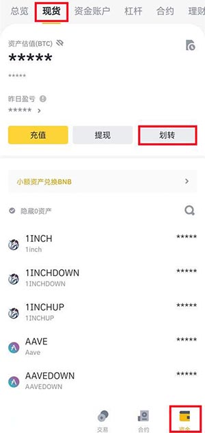 7、等USDT到账后,回到首页,右下角资金,左上角现货,然后划转,需要把USDT转换成可以交易的币。这中间也是没有任何损耗的,经过这两个步骤之后才算做好买shib柴犬币的准备步骤。
