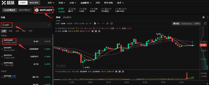 目前能够购买波卡币的交易所有很多,比如说币安交易所、欧易OKX交易所、火必网交易所等等,文中以欧易OKX交易所举例为各位投资者介绍DOT币购买教程。