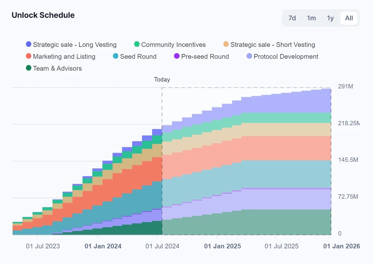 Mintlayer(ML)是什么币?全面解读Mintlayer(ML)代币!Mintlayer 项目代币 ML 是 Mintlayer 生态系统的命脉。尽管 ML 最初作为 ERC-20 代币推出,但自主网启动后,大部分供应已经迁移到 Mintlayer 主网的原生环境中。ML 币具有固定供应量和通缩机制设计,在推动网络的权益证明机制中发挥关键作用。总供应量上限为 6 亿枚代币,其中 4 亿枚已预挖,剩余 2 亿枚将在发布后的第一个十年内生成!