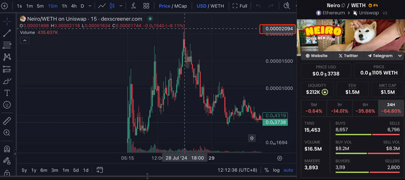 短短的一天左右的时间,Neiro 的出现再次为 Meme 币市场带来了新的活力,也带来了新的“暴富故事”——