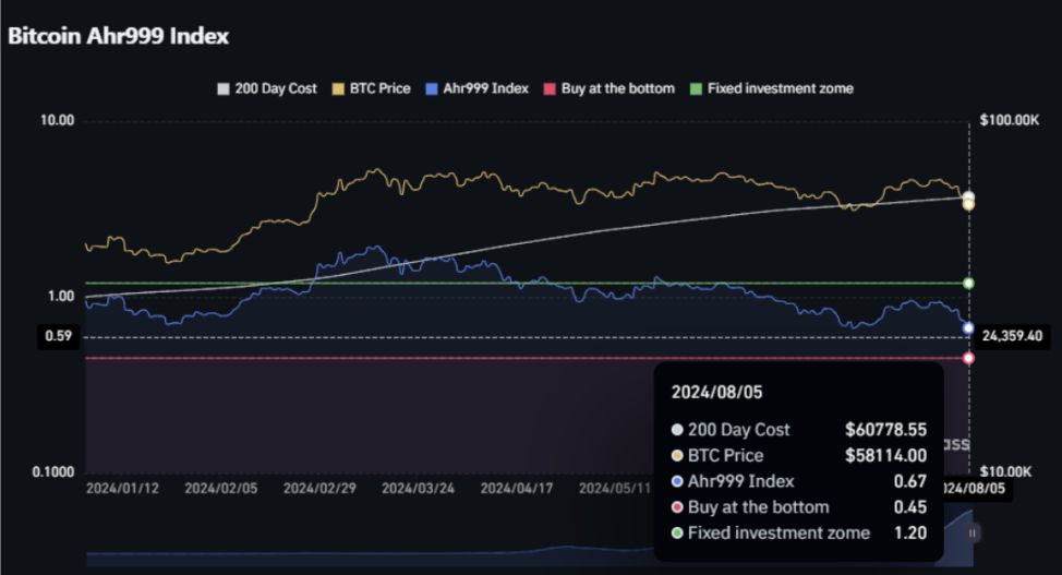 Ahr999 指标:落在定投区间,但数据更新不即时,或已到达抄底线