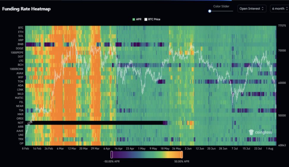 在 7 月上旬,随着币价攀升资金费率又再次上升,以事后来看,又是一次阶段性的高点,目前多个币种资金费率为负,市场回归于冷静、甚至是悲观情形。