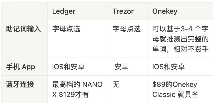 用户体验欠佳也是事实,但这行业本身就是在初期,硬件钱包的迭代速度也很关键。Ledger/Trezor/Onekey 我都使用过,从助记词输入、手机 App、蓝牙 3 方面综合比较,Onekey是体验最好性价比最高的。内部买卖功能据说Onekey也是最好的,但我基本不用,不在这里给结论