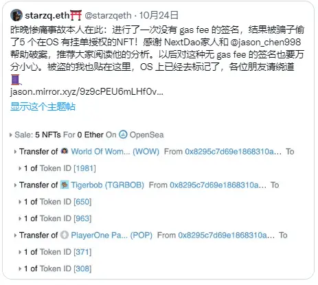 小伙伴再次问,如果 approve 了一些不该approve的操作,钱包不是照样被盗吗?是的,我自己就有惨痛经历,无gas fee签名后NFT 照样被转走。所以需要把将经常操作的热钱包和极少操作的冷钱包分开,操作越多被钓鱼风险越高