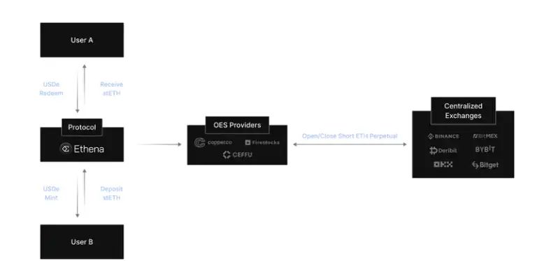 USDe可以被认为是基于中心化交易所(CEX)的稳定币,其稳定机制目前主要依赖于CEX的运营稳定性。具体来说,USDe使用主流加密货币作为抵押,并采用“delta对冲”策略来维持抵押资产的稳定性。