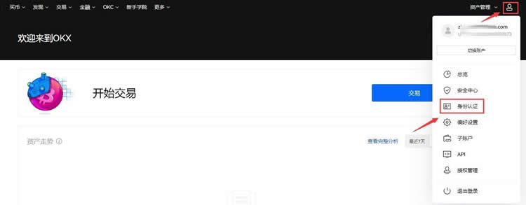 KYC认证:登录之后,点击右上角图标—【身份认证】,按提示要求,按顺序完成【LV.1基础认证】、【LV.2高级认证】。