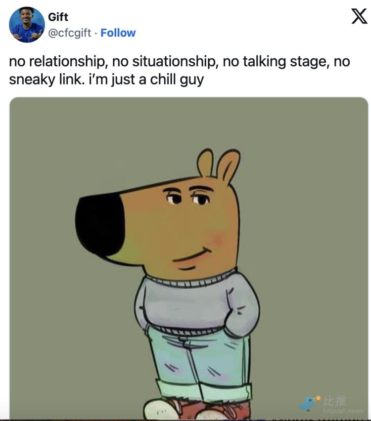 Just a Chill Guy–这个火遍 Tiktok(海外版抖音)的表情包被币圈人搬到了链上,几天内市值一举突破 5 亿美元。