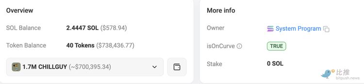 在两天里,这位幸运的交易者继续抛售部分持仓。截至撰稿时,据 DEX Screener 的数据,该钱包已经抛售了价值 411,500 美元的 CHILLGUY,而该账户中仍持有近 70 万美元的 CHILLGUY。