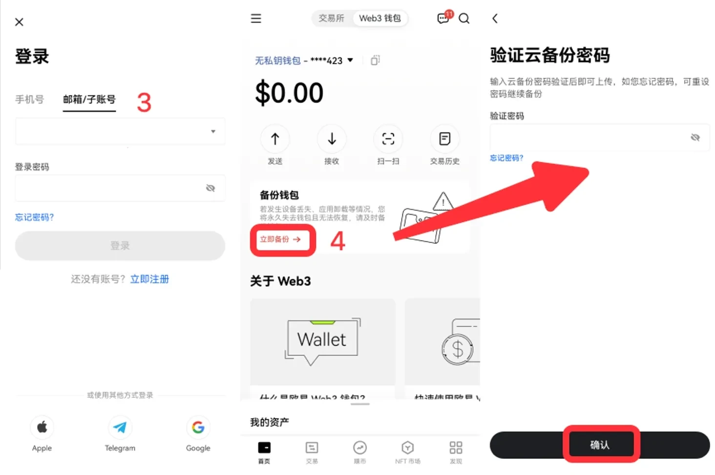 [3] 输入 OKX 交易所的账号和密码,若已经登录则无需此步骤;