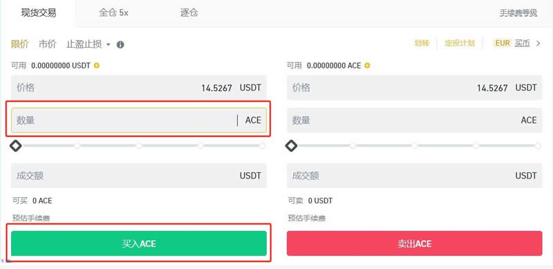 8、填写买入数量,点击【买入ACE】即可完成ACE币交易