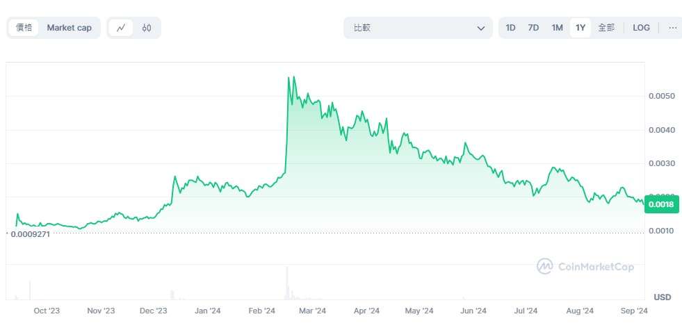 进入2024 年后,VTHO 价格开始随整体市场回温。在2024 年2 月,该资产触及0.00558 的一年高点,尽管接下来再度回调,但在过去一年的涨幅仍超过90%。