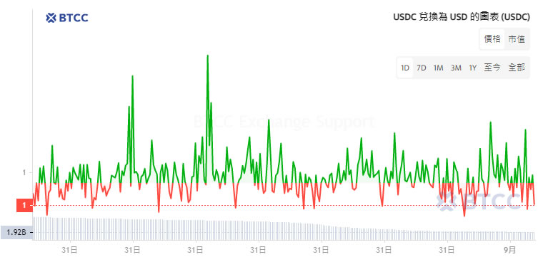 如上文所述,USDC 是由美元储备支持的,因此,其价格大多数时候都等同于1 美元。
