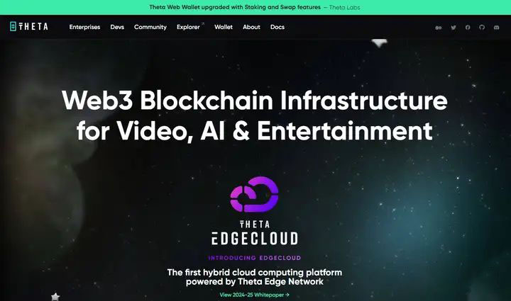 Theta Token[6]是一个去中心化的区块链平台,专为点对点视频流而设计,利用来自谷歌和索尼等大公司的企业验证器节点。其原生代币 Theta 币促进了用户之间的内容交付。