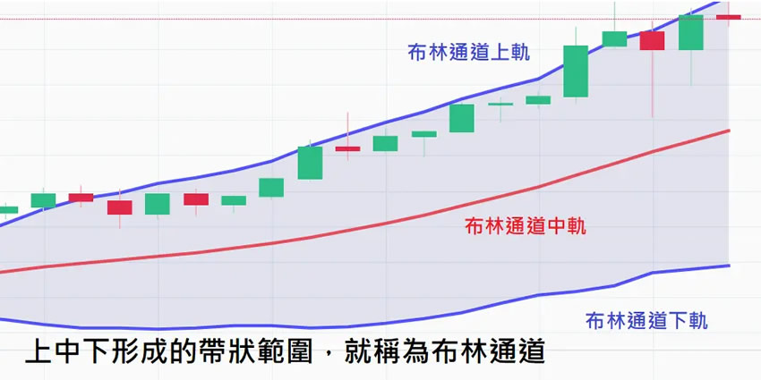 你可以发现,其实布林通道的中轨,就是20 日均线(月均线),因此在初始设定上,布林通道适合用于分析大约一个月左右的交易时长。