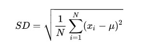 以下为标准差SD 的公式(Standard Deviation),U为平均值,X为数值,N 为取样母体。