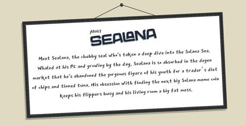 Sealana ($SEAL) 是建立在Solana区块链上的新迷因币,具有有趣且引人入胜的吉祥物——一只超重的海豹,该角色代表了典型的加密货币交易者,体现了加密货币社群中的幽默和相关性。
