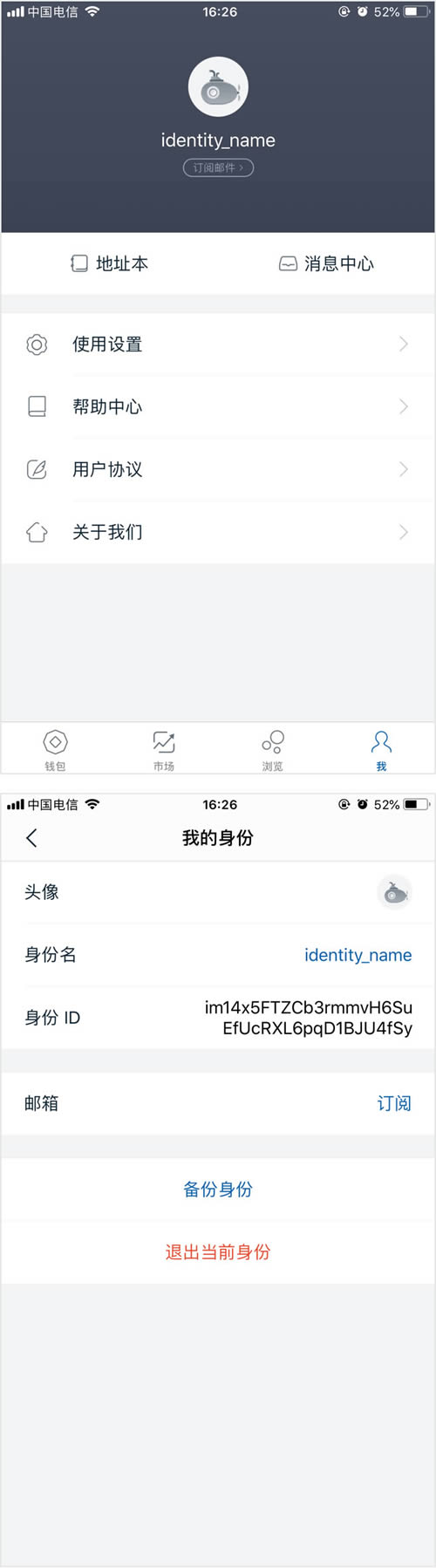 一. 点击 "我" -> 再点击顶部的头像按钮, 进入我的身份界面