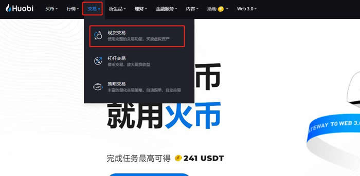 6.点击【交易】-【现货交易】。