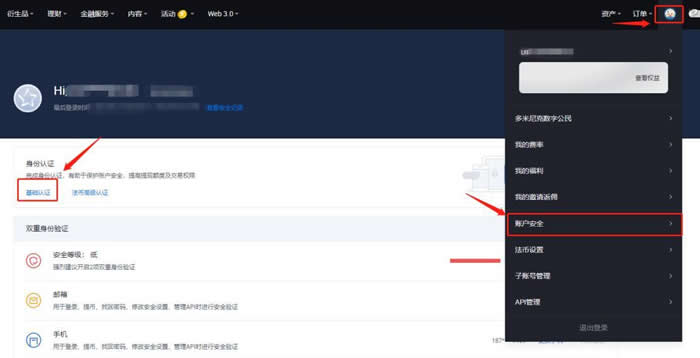 4.点击头像,【账户安全】-【基础认证】。