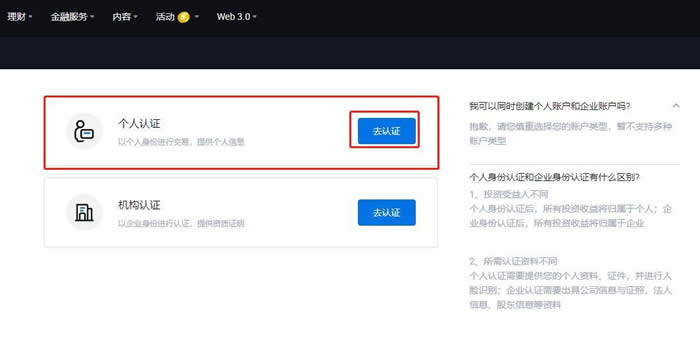 5.选择个人认证,点击【去认证】,完成认证。