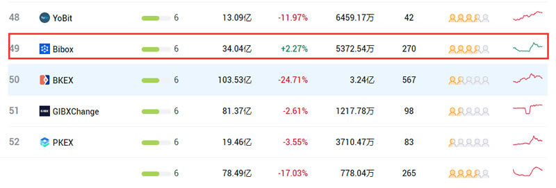 Bibox交易所排名第几?