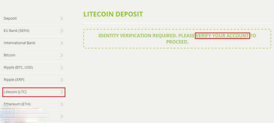 2、点击头部导航栏中的Deposit,并在左边列表选择一个要充值的币种