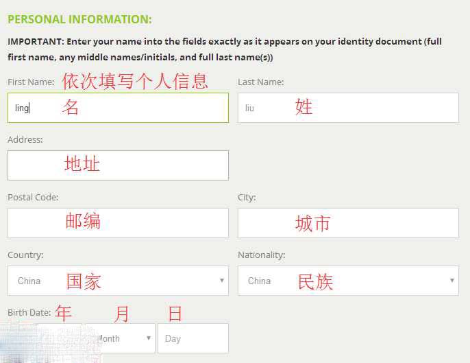 3、依次填写注册信息(注:不要使用qq邮箱,可使用Google邮箱)