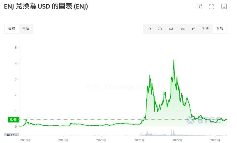 自2017 年推出以来,ENJ 历史投资回报率接近10000%,从最初的0.0223 美元直接飙升到2021 年4 月25 日的2.25 美元。有趣的是,ENJ在2021 年作为NFT 热潮的一部分实现了大部分收益。