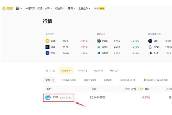 5.在右侧搜索框搜索恩金币英文简称ENJ