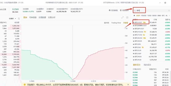 7、搜索币种简称【BTC】,选择【BTC/USDT】交易对