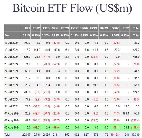 比特币现货ETF净流出1.68亿美元