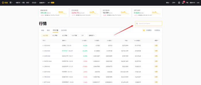 第一步:登陆币安(点击注册)官网,进入行情页面