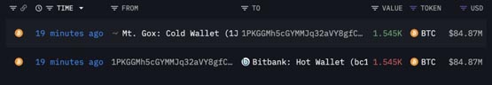 Arkham数据:Mt.Gox再度转移1.48亿美元比特币至Bitbank交易所