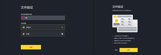 5、在这里,您可以看到相应的验证类型:证件签发国家/地区、拍摄颁发身份证正反两面的照片。不同国家或地区的限额各不相同。点击【证件签发国家/地区】的按钮,可以选择您的居住国或地区。